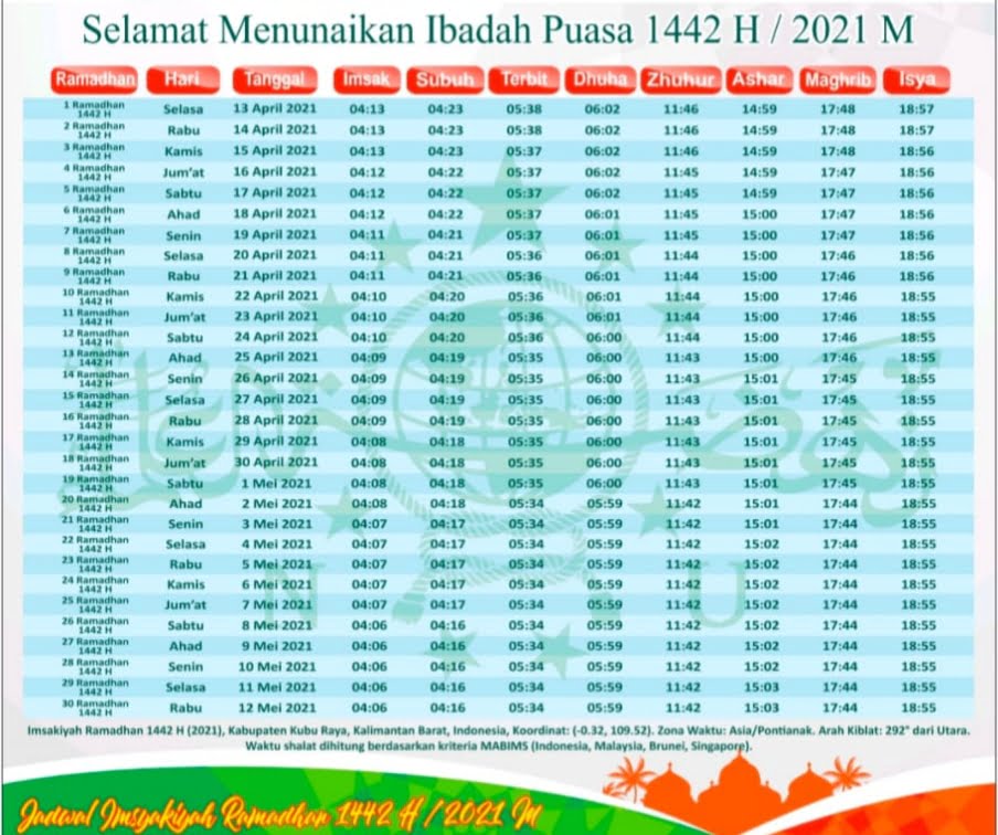 Jadwal Imsakiyah Puasa Ramadhan 2021 Untuk Kota Pontianak Kalbar Dan Sekitarnya Tribunpontianak Co Id